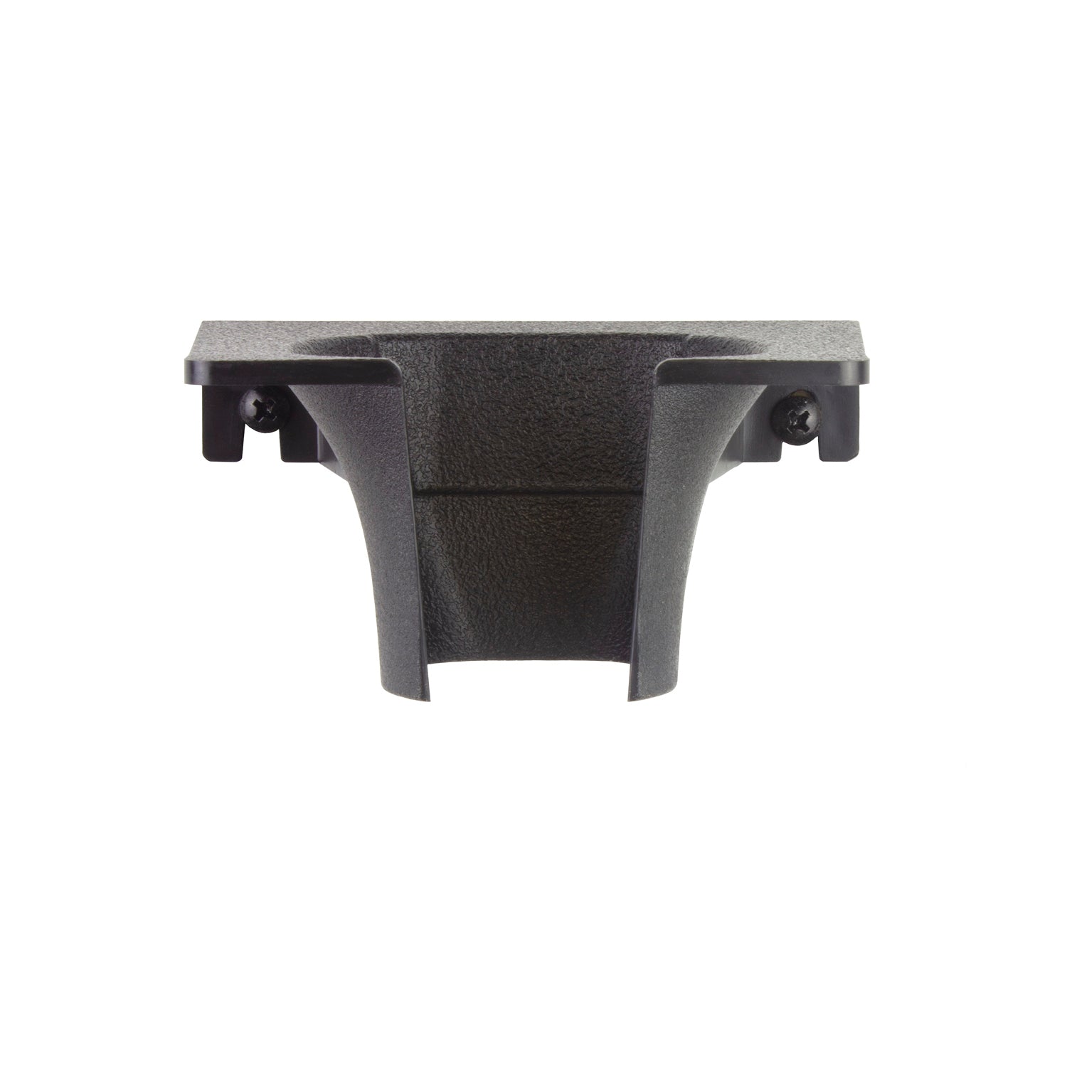A black wall mount designed for mounting a Thumper Mini Pro handheld massager.